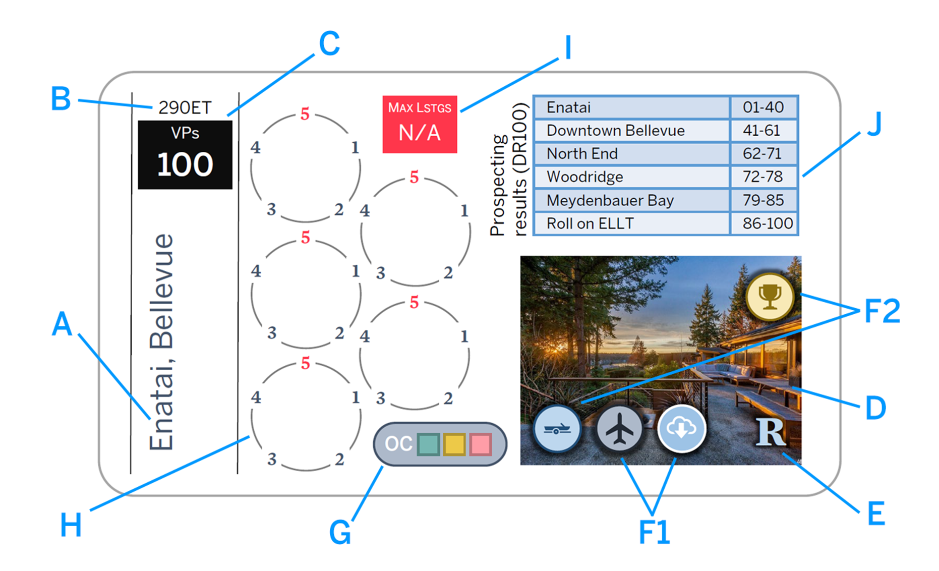The evolving game system for Spheres & Farms™ requires substantial local information about each location, as well as enough scope to reflect the wide-ranging operations of real estate agents winning listings regionally. This raised a problem of unusual complexity for a boardgame.