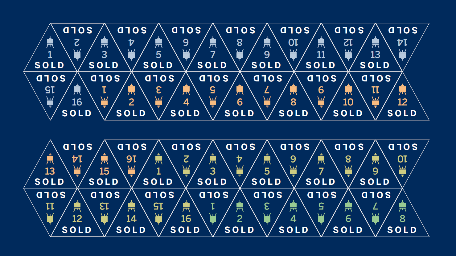 The flags for each listing on a location cards are flipped to their “sold” sides when sold. Each is then advanced with all other sold and current listings on that card’s listing dials each turn until reaching the fifth point, when the “sold” flag must be removed. At the moment when an office’s last current or sold listing flag is removed from a location card, the VP value of that location is deducted from that player office’s current accumulated VP total on the combined records track. In no case are P&CR points deducted.
