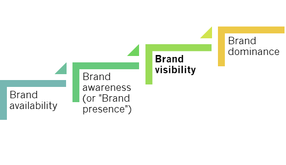 - brand visibility — a measurable notion of the brand's presence in the market; high visibility signals equality with top competitors